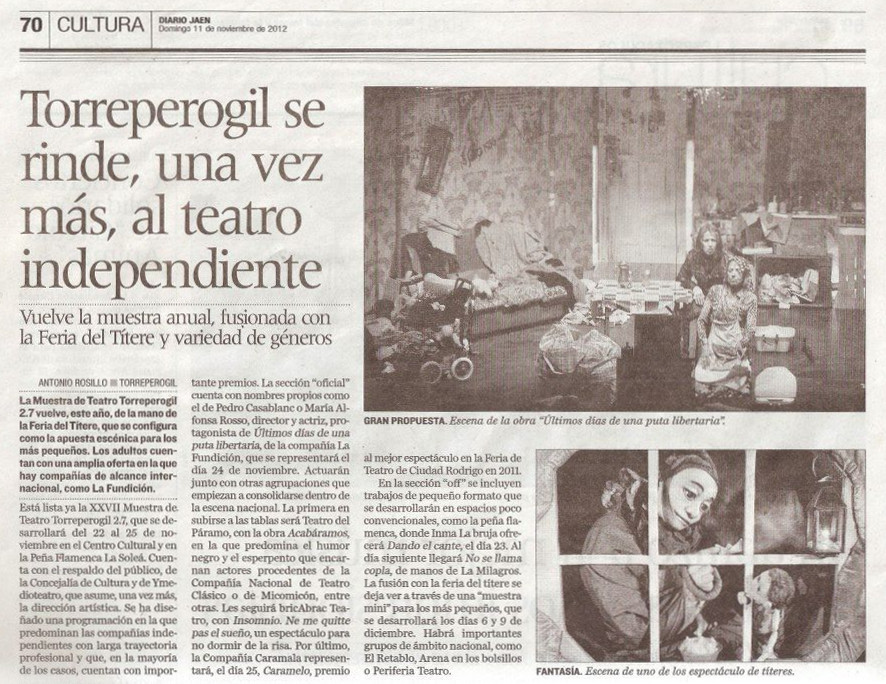 Nota de prensa: Últimos días de una puta libertaria, de la Fundición Teatro