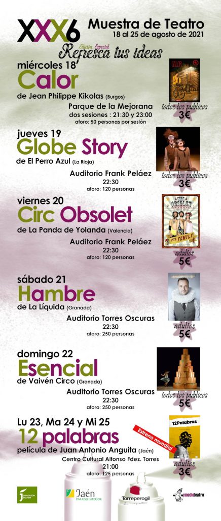 Seguimos viviendo tiempos nuevos y por eso este año la Muestra de Teatro se mantiene con la temperatura alta, muy alta… Por eso se celebrará al caer el sol, del 18 al 25 de agosto de 2021